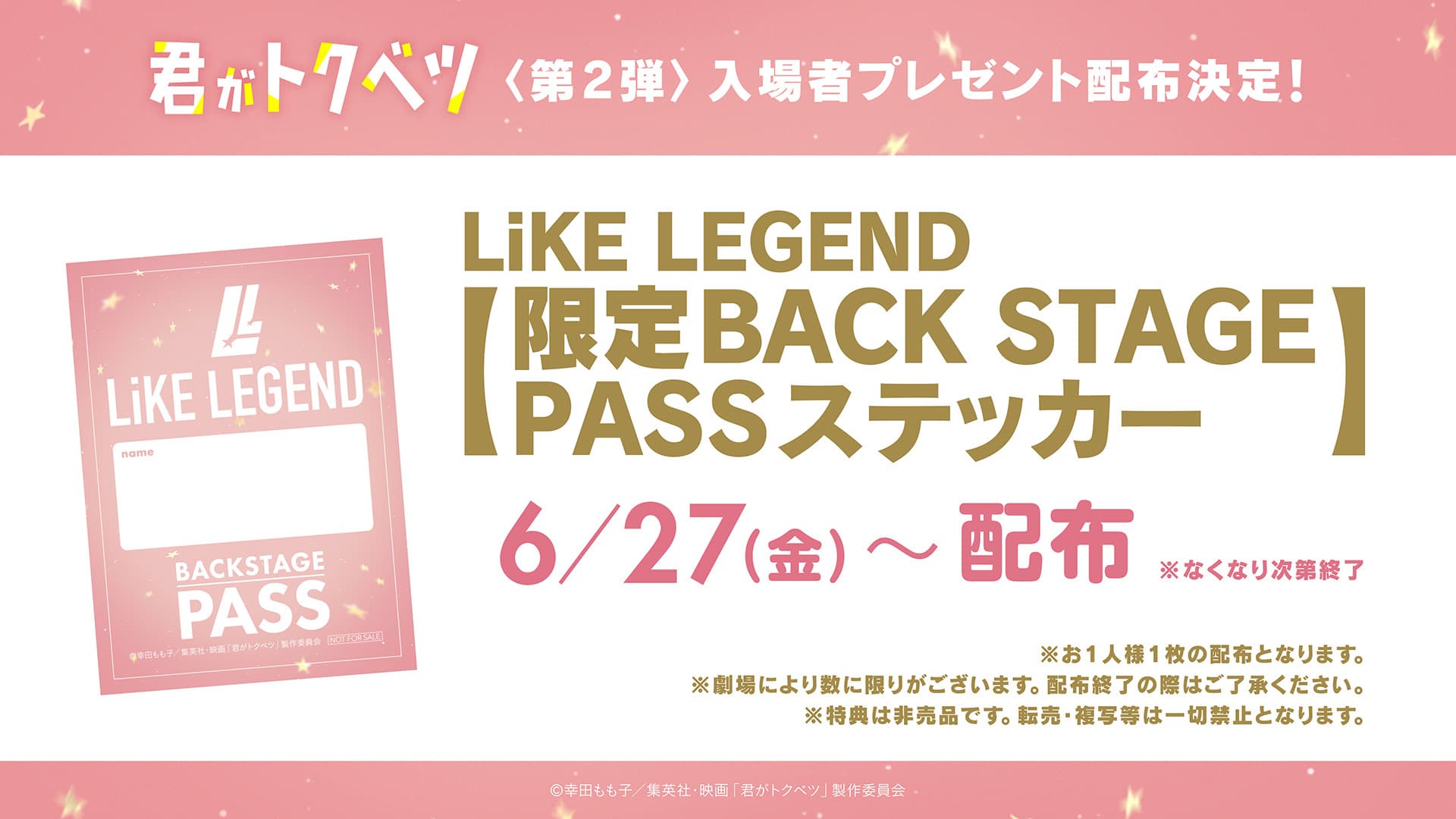 6月27日(金)から<第2弾>入場者プレゼントLiKE LEGEND【限定BACK STAGE PASSステッカー】の配布が決定いたしました!