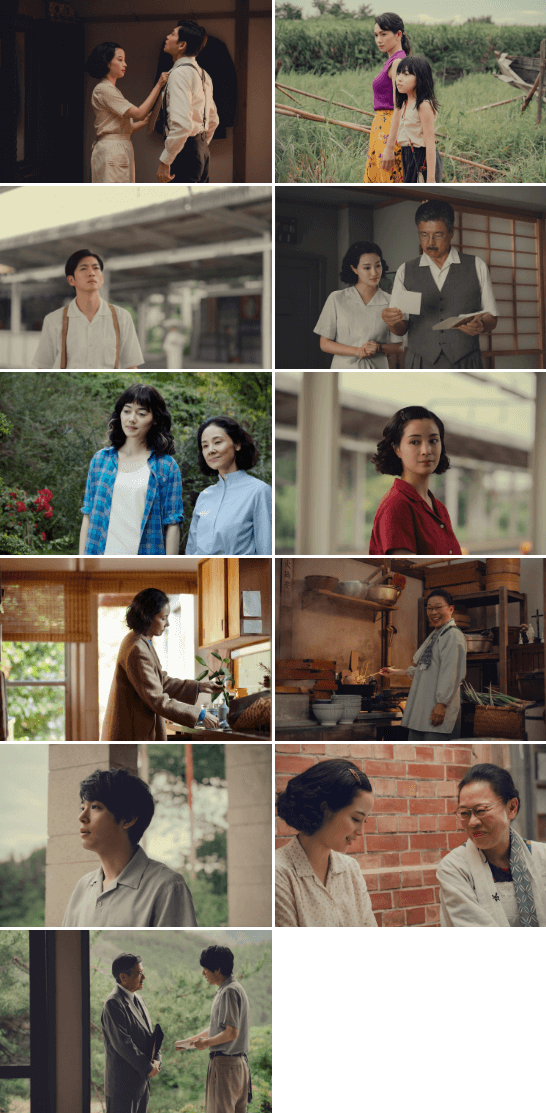 1950年代の長崎で暮らす主人公の悦子(広瀬すず)と、夫の緒方二郎(松下洸平)の日常を切り取った夫婦のショットや、ミステリアスな雰囲気漂う佐知子(二階堂ふみ)と、その娘の万里子のショットの他にも、福岡から訪ねて来て、しばらく悦子と二郎の団地に滞在することになる二郎の父、緒方誠二(三浦友和)や、うどん屋の藤原役の柴田理恵、高校教師の松田重夫役の渡辺大知など、本作に深みを与えるキャストの場面写真も解禁となりました。