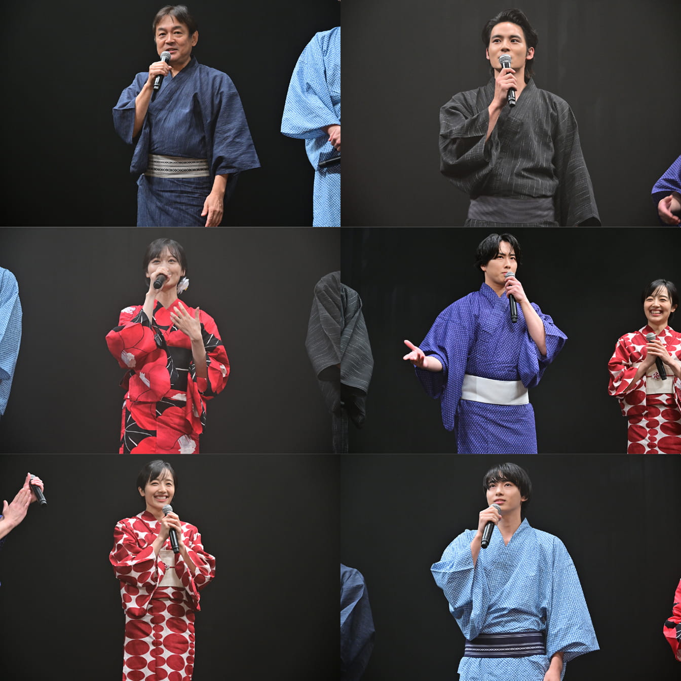 夏にピッタリ且つ作品の雰囲気をまとったシックで雰囲気のある浴衣姿でステージに登場した一同に、満席の会場からは歓声が上がりました。