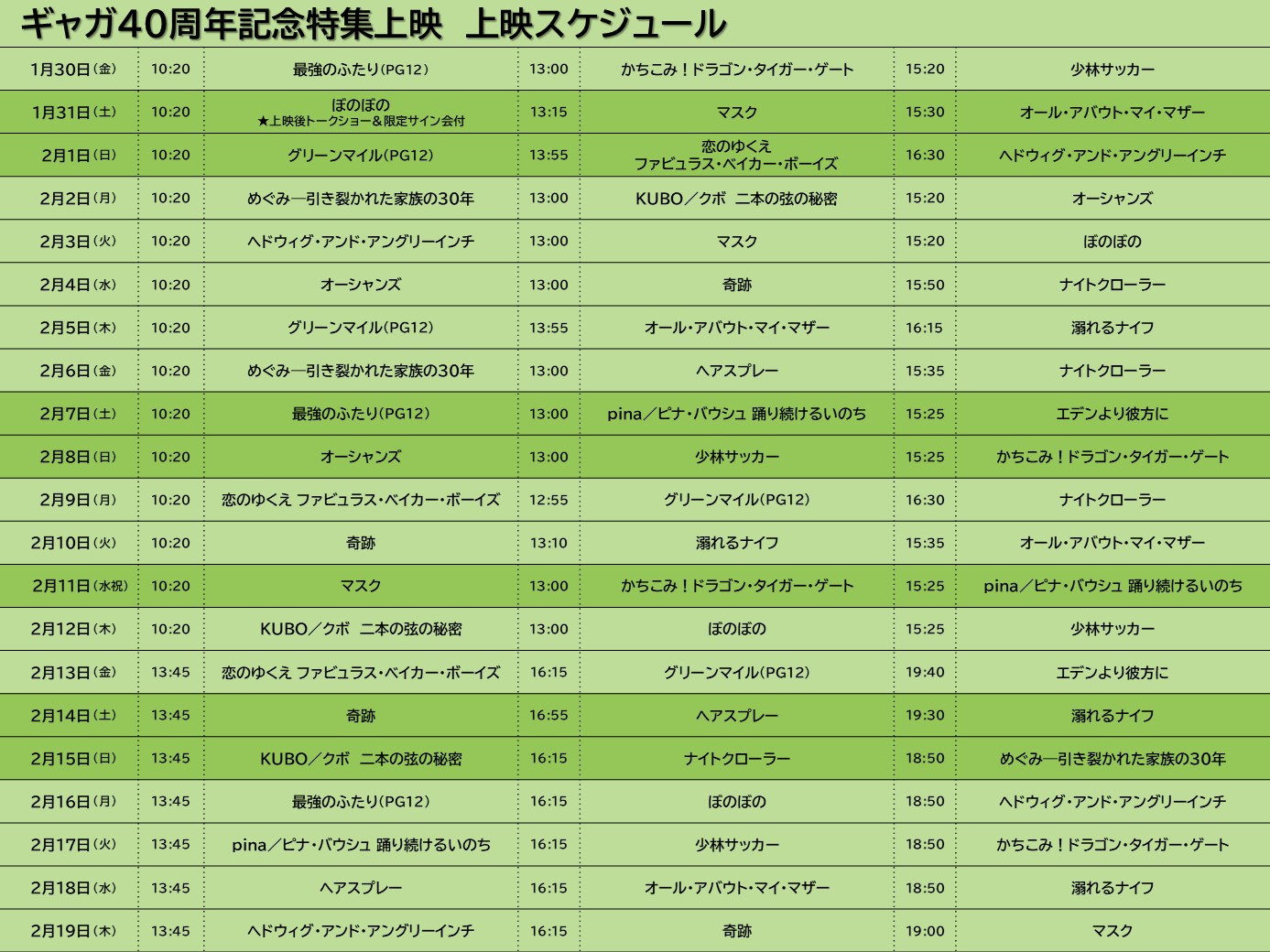 ギャガ40周年記念特集上映の上映スケジュールが下記の通り決定いたしましたのでご案内いたします。
