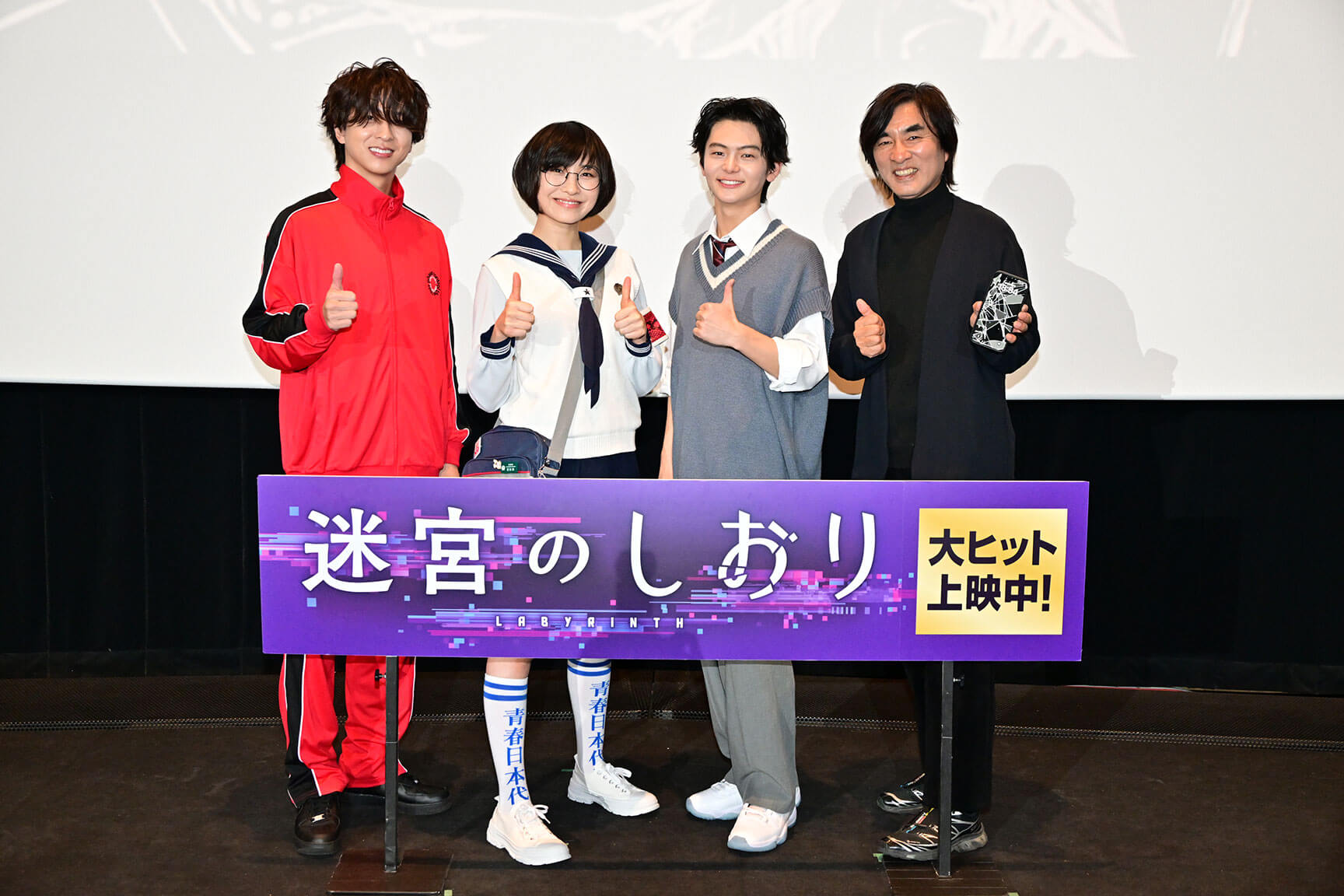 1月25日(日)に新宿バルト9にて公開御礼舞台挨拶が実施され、SUZUKAさん(新しい学校のリーダーズ)、寺西拓人さん、齋藤潤さん、そして河森正治監督が登壇しました。
